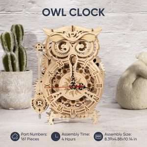 Robotime Rokr Creative DIY Toys 3D Owl Wooden Clock Building Block Kits For Children Adult Christmas Gifts Home Decoration LK503