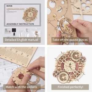 Robotime ROKR Zodiac Wall Clock 3D Wooden Puzzle Model Assembly Toys Gifts for Children Kids Teens LC601 Support Dropshipping